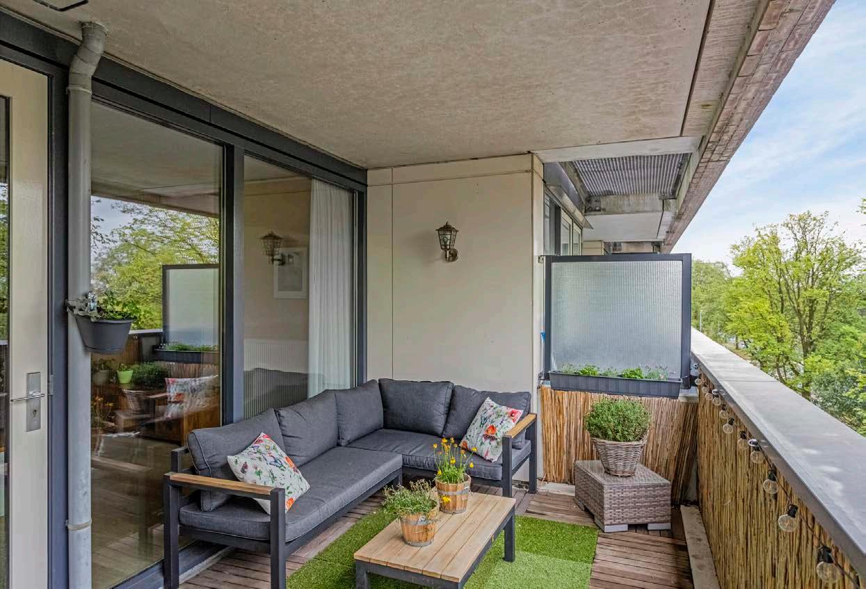 Het balkon, gelegen op het westen, is een heerlijke plek om de dag af te sluiten met uitzicht op de ondergaande zon. Hier kun je genieten van de warme namiddagstralen met een kop koffie of een goed boek. Deze buitenruimte biedt ook mogelijkheden voor een kleine tuin met planten of een setje terrasmeubilair, perfect voor gezellige zomerse avonden.
