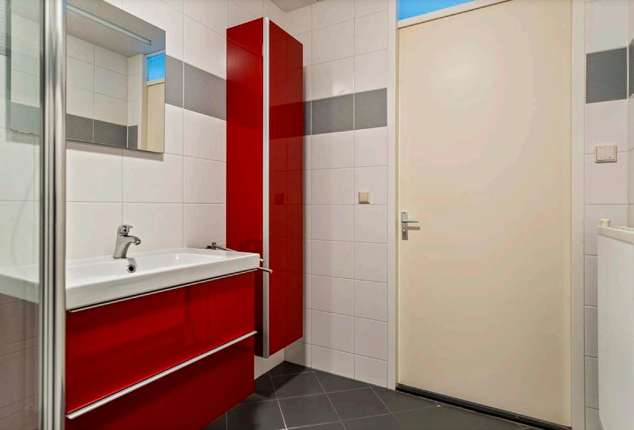 De badkamer is voorzien van een douche en wastafelmeubel, klaar voor een frisse start maar met ruimte voor jouw eigen ideeën en verbeteringen.