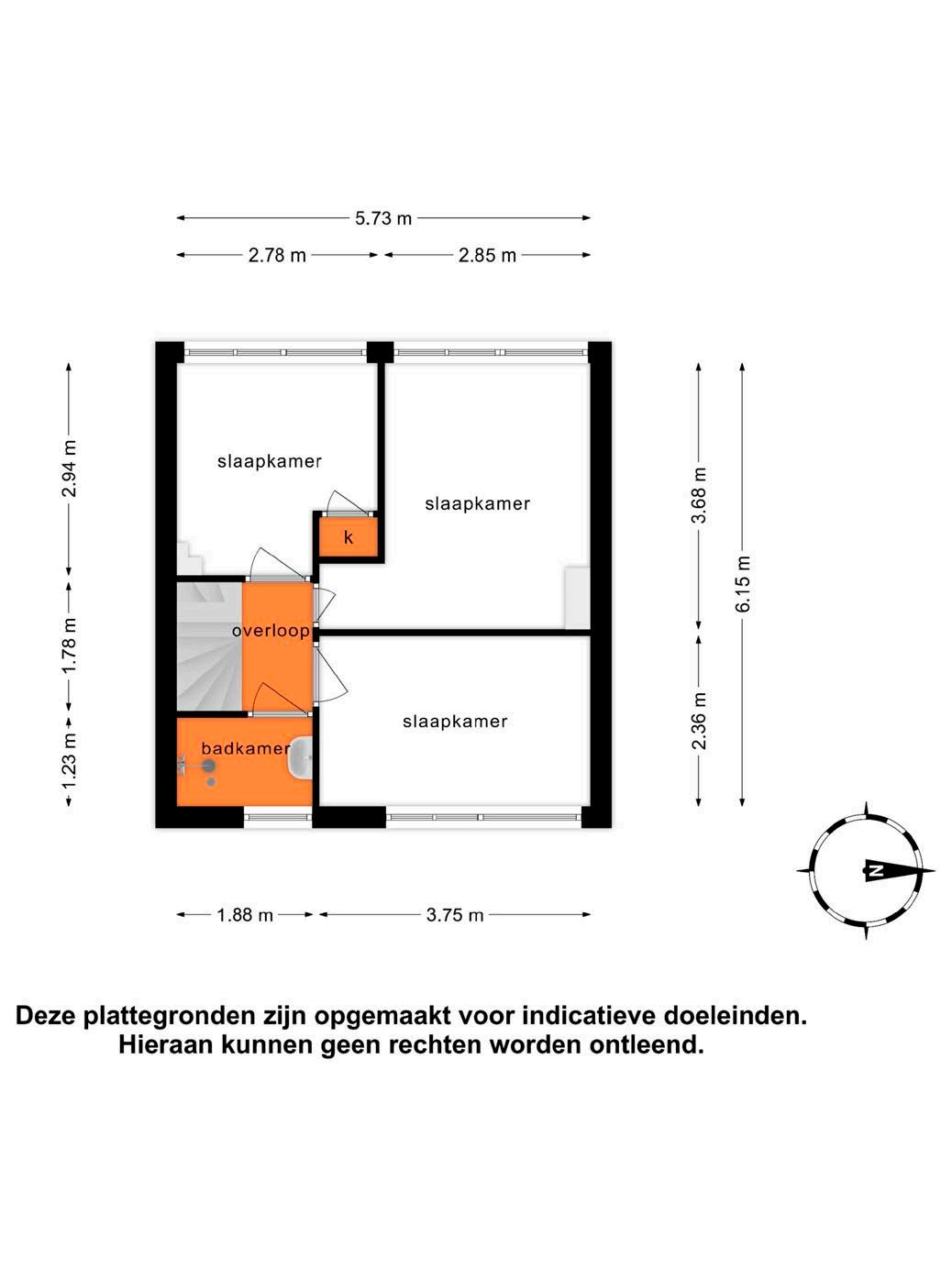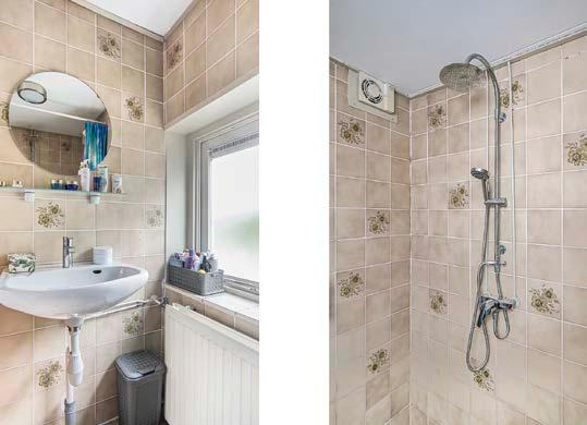 Boven zijn drie slaapkamers, respectievelijk bijna 8, 9 en 12 vierkante meter, net als beneden belegd met houtlaminaat. Ook hier zien we grote raampartijen, aan de achterzijde bijna kamerbreed. De badkamer is eenvoudig van opzet, met een douche en een wastafel, maar wel geheel betegeld. Deze verdieping biedt zeker mogelijkheden om de indeling aan te passen aan de eigen behoefte.
