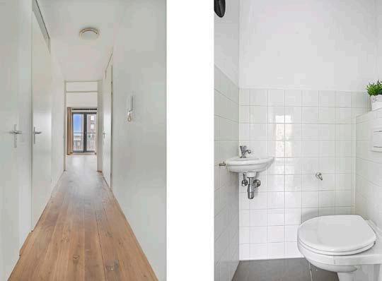 Je komt binnen in de gezamenlijke entree met het bellentableau, de brievenbussen, het trappenhuis en de lift. Met de lift bereik je de derde verdieping en stap je het appartement binnen in de hal met de meterkast en toegang tot de diverse vertrekken.