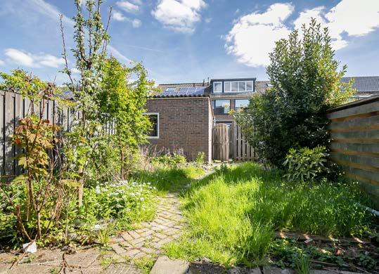 De tuin met achterom is gelegen op het noordoosten en voorzien van een vrijstaande stenen berging met stroom.