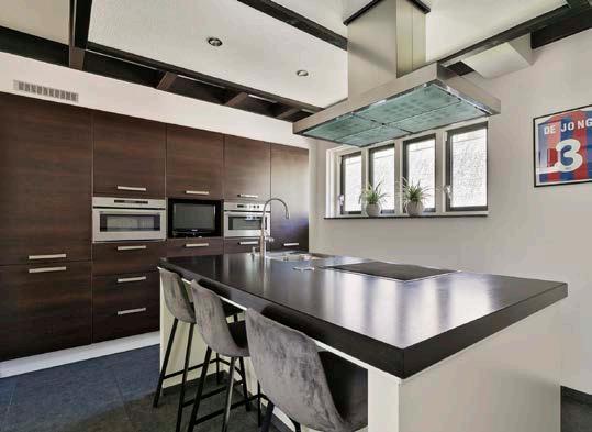 Er is een praktische keuken met kookeiland en moderne apparatuur. Vanuit de keuken heb je toegang tot de handige bijkeuken.