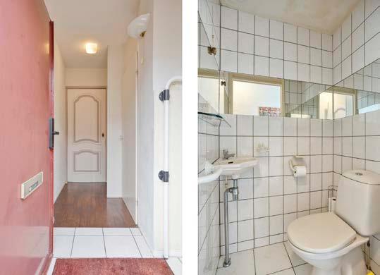 Bij binnenkomst in de hal is er ruimte voor het ophangen van jassen en bevindt zich het toilet met fontein. Vanuit de hal loopt u door naar de woonkamer/keuken.