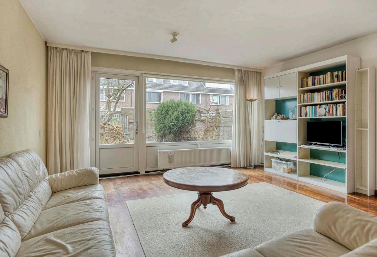 De woonkamer is ruim opgezet en praktisch in te delen. Door de rechthoekige vorm is er voldoende ruimte voor zowel een ruime zithoek als een eethoek. Grote raampartijen zorgen voor een prettige lichtinval. Via de tuindeur heeft u direct toegang tot de achtertuin.