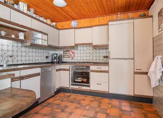 De woonkeuken biedt zoveel meer dan alleen een plek om te koken. Het is een ruimte waar u kunt ontspannen, eten, entertainen en bijpraten met vrienden en familie. Het is ook de ingang naar de bijkeuken en garage, waardoor deze ruimte de spil van het huis is. Hoewel de keuken gedateerd is (geïnstalleerd in 1979), biedt het nog steeds veel mogelijkheden om het een modern tintje te geven. Het is functioneel en biedt alles wat u nodig heeft bij het koken en bakken van heerlijke maaltijden. De wasmachine aansluiting bevindt zich tevens in de bijkeuken.