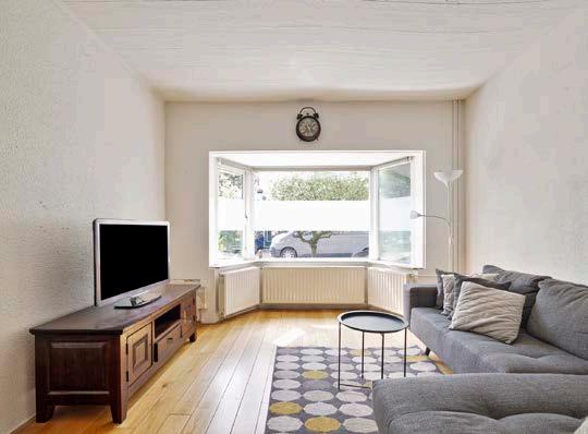 De gezellige woonkamer heeft veel ruimt en een erker. Dit is, met zijn uitnodigende sfeer, is de perfecte ontmoetingsplek voor vrienden en familie.