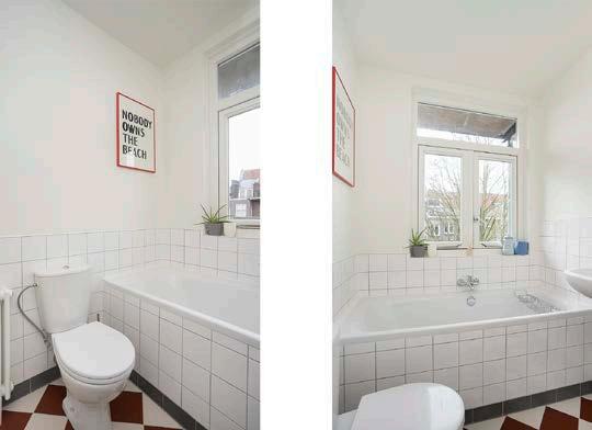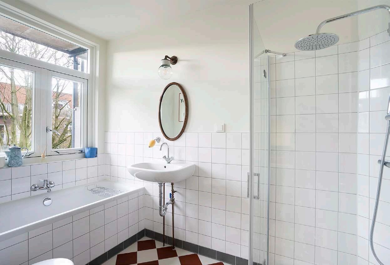 Ook de badkamer is in 2020 vernieuwd en voorzien van een ligbad, douche, wastafel en een toilet. De ruimte is volledig betegeld en hier is de cv-opstel ling (Intergas, 2015) gerealiseerd.