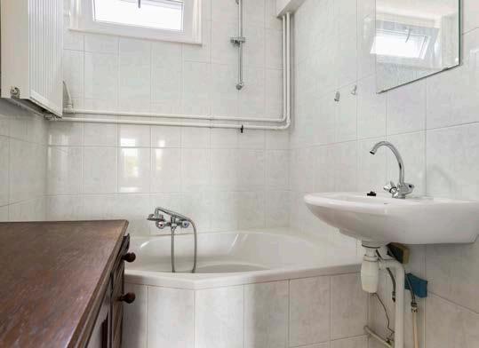 Aan de voorzijde vind je de badkamer. De ruimte is ietwat gedateerd, van grond tot plafond betegeld en maakt daarmee een verzorgde indruk. De inde ling bestaat uit een bad met douchemogelijkheid, wastafel, designradiator en een toilet. Hier kun je je creativiteit helemaal de vrije loop laten en je eigen spa aan huis realiseren.