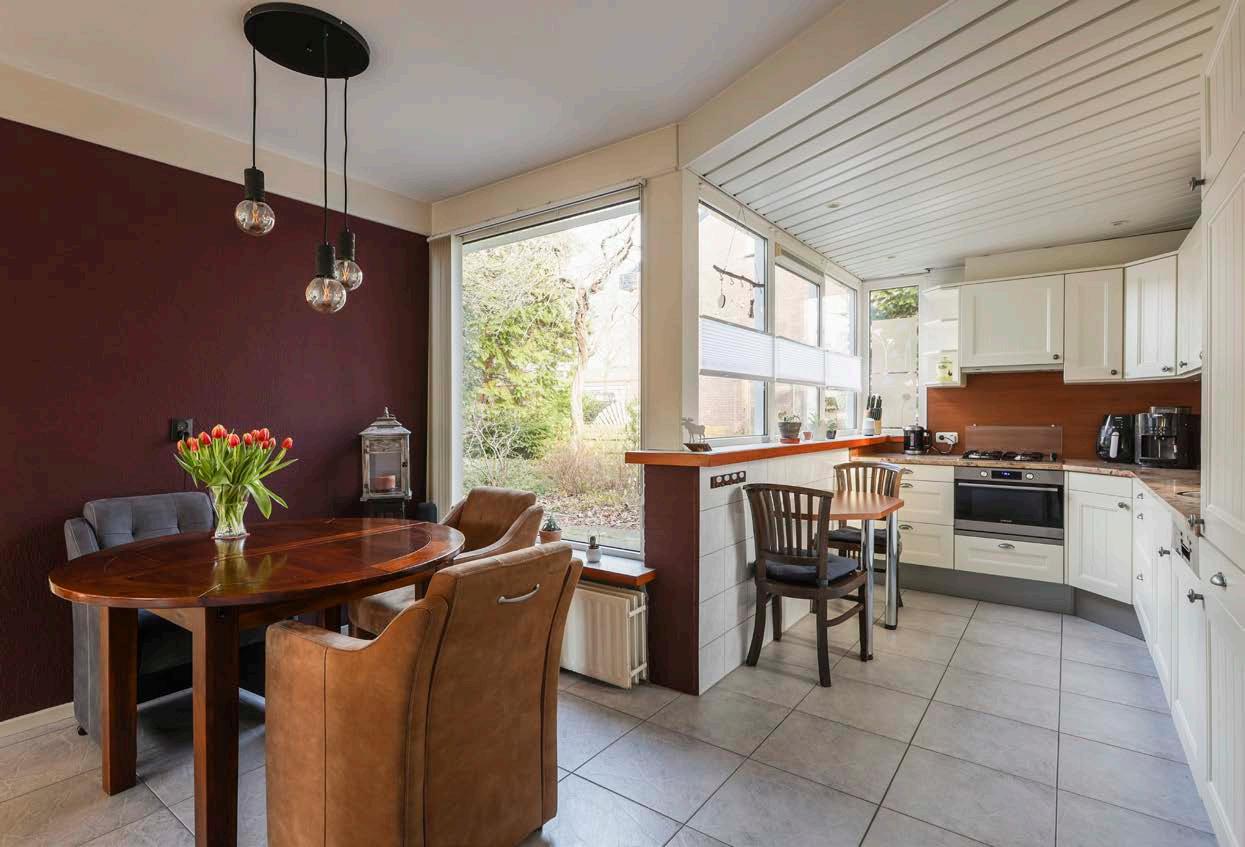 De buren horen we zelden en hebben we goed contact mee. Afgelopen zomer hadden we nog een buurt barbecue wat erg gezellig was. De school van onze kleinkinderen is op loopafstand en hun vriendjes wonen in onze straat, we gaan dan ook niet ver weg maar nu onze kinderen het huis uit zijn willen we minder groot gaan wonen.