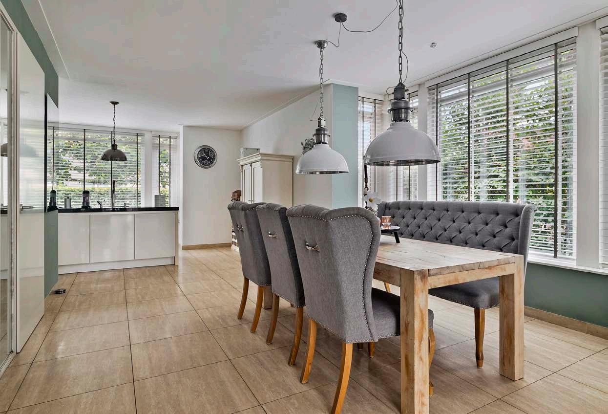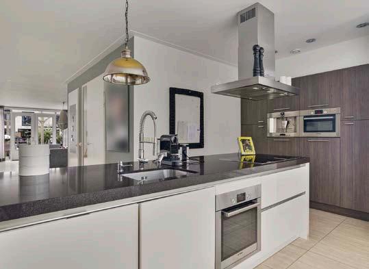 De moderne keuken is uitgerust met de nodige apparatuur waaronder een aparte koelkast en vriezer, oven, magnetron en een Quooker. De sfeervolle erker met eettafel zorgt hier voor de beleving van een woonkeuken. Hier kunnen heerlijke maaltijden worden bereid terwijl je gezellig bijpraat met familie of vrienden.