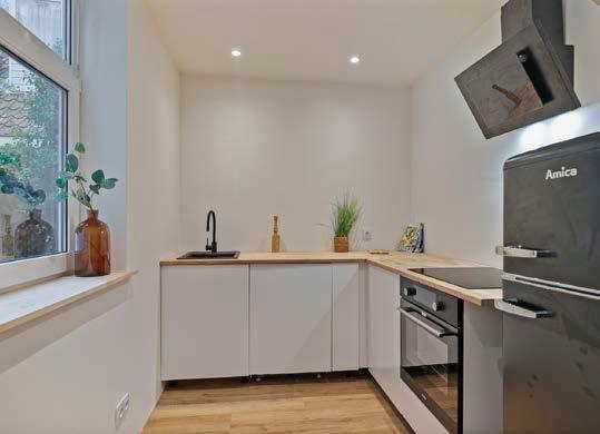 De moderne keuken is ontworpen voor gebruiksgemak, waardoor koken een plezier wordt, of je nu alleen bent of gasten ontvangt.