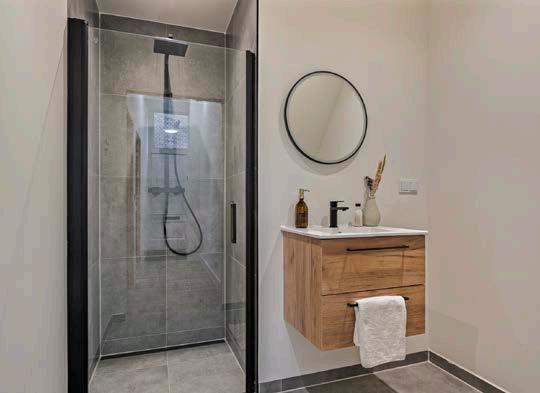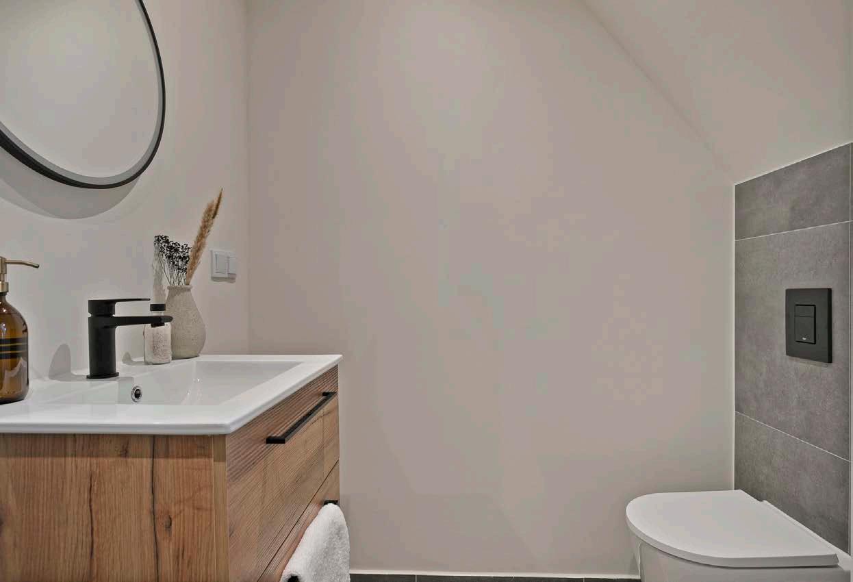 De badkamer straalt luxe en comfort uit met moderne voorzieningen die je dagelijkse routine aangenaam maken.