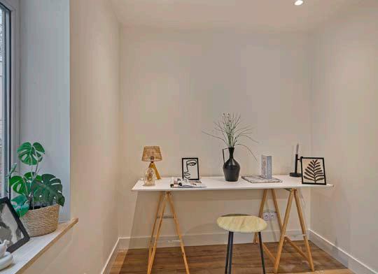 Op de eerste etage bevind zich een rustige werkplek met een groot raam, wat zorgt voor veel lichtinval. Deze ruimte is ook gemakkelijk om te toveren naar een extra slaapkamer.