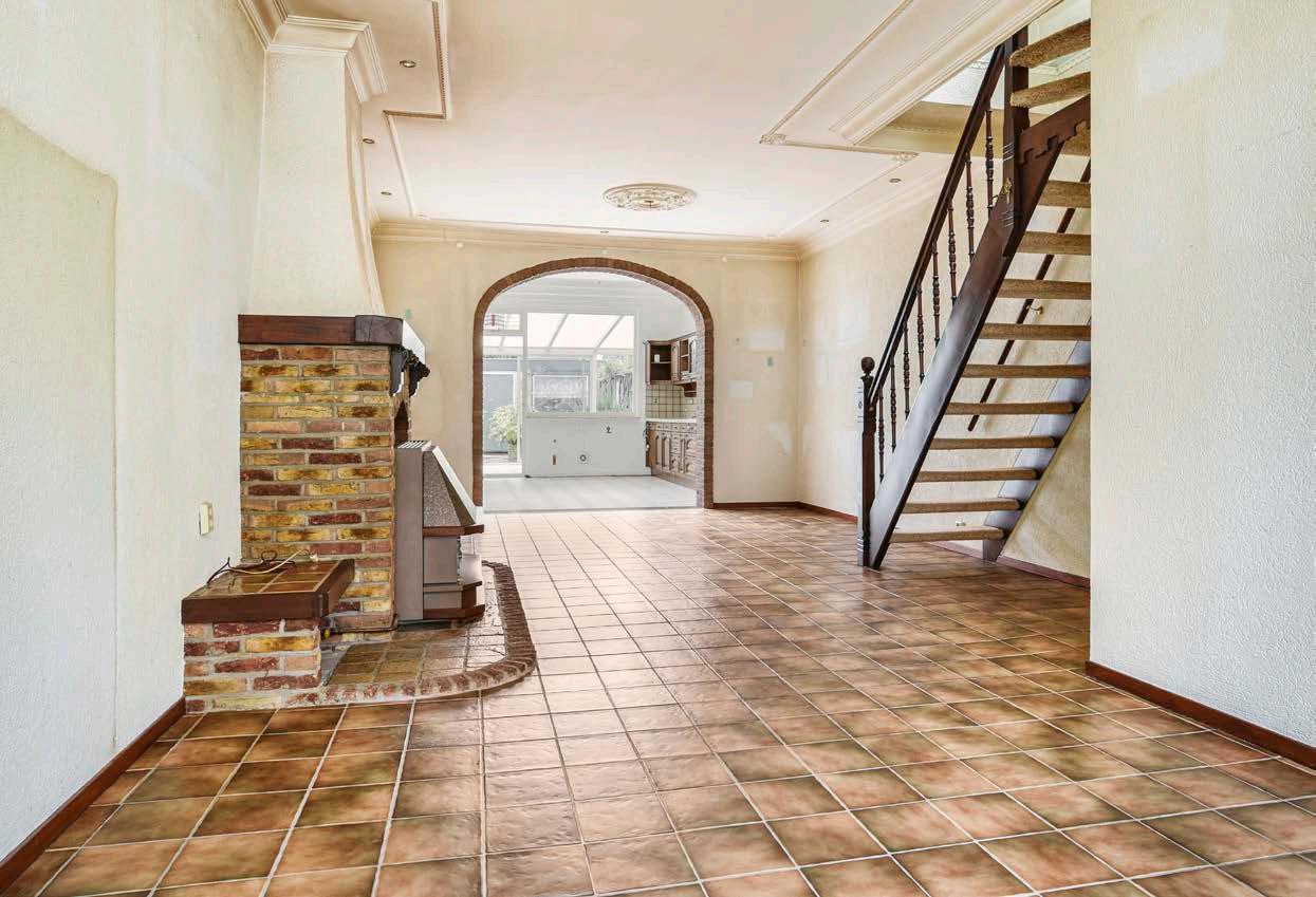 Entree, hal voorzien van ruimte voor het toilet. Via de hal kom je binnen in de sfeervolle woonkamer welke voorzien is van glas in lood ramen, een plavuizen vloer en gezellige schouw met gaskachel. Wanneer je hier de boel hebt verbouwd, dan kan je thuisko men lekker op de bank ploffen en te genieten, tot rust te komen maar vooral thuis te zijn.