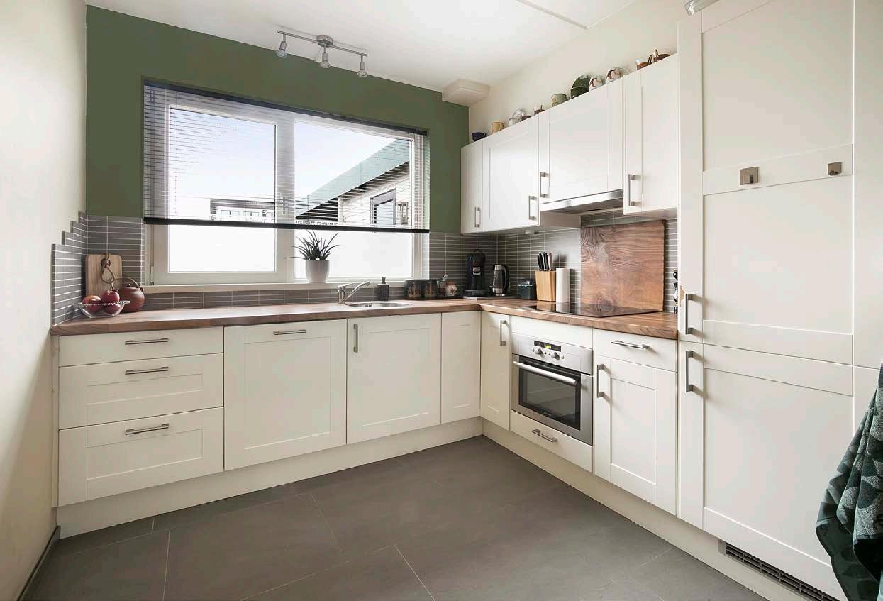 De keuken is praktisch en biedt alles wat je nodig hebt om heerlijke maaltijden te bereiden. De Lvormige opstelling met een lichte kleurstelling straalt rust en klasse uit. Hier bereid je met liefde maaltijden op de inductiekookplaat, terwijl de combimagnetron, koelvriescombinatie en vaatwasser het leven net dat beetje makkelijker maken.
