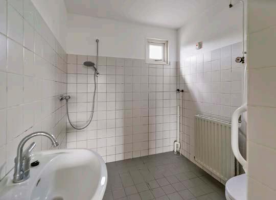De functionele badkamer is uitgerust met een wastafel, douche, toilet en aansluiting voor wasapparatuur. Een neutrale ruimte die je naar eigen voorkeur kunt personaliseren.