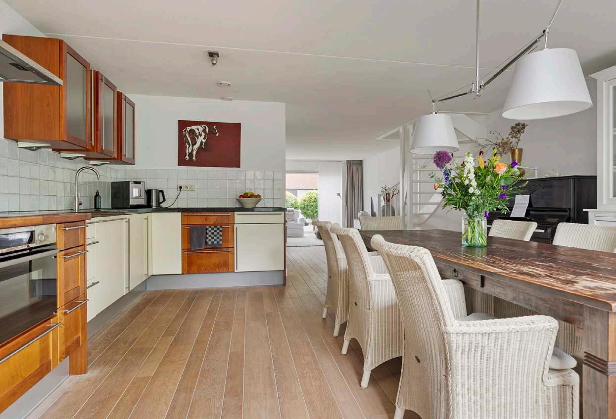 De keuken is vaak het hart van het huis, en deze riante woonkeuken vormt daarop geen uitzondering. Met een L-vormige indeling biedt het volop ruimte voor het bereiden van maaltijden, terwijl de ligging aan de tuinzijde zorgt voor een mooie, lichte ruimte waar je ’s ochtends kunt genieten van je koffie met uitzicht op de tuin. Hier komen gezin en vrienden samen voor heerlijke maaltijden en mooie momenten, wat deze keuken een centrale plek in huis maakt.