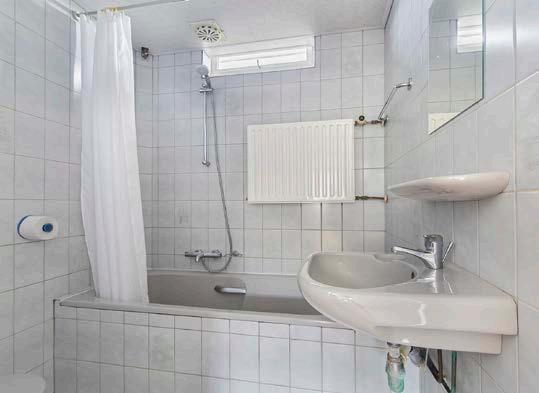 Het eerste dat je opvalt als je de woonkamer binnenkomt is de aangename hoeveelheid daglicht die door de grote ramen naar binnen valt. Wat een fijne ruimte! Er is voldoende plek voor een royale zithoek en een gezellige eethoek bij de open keuken. Het geheel is afgewerkt met een laminaatvloer en gestucte wanden. ‘s Winters geniet je van de sfeervolle houtkachel.