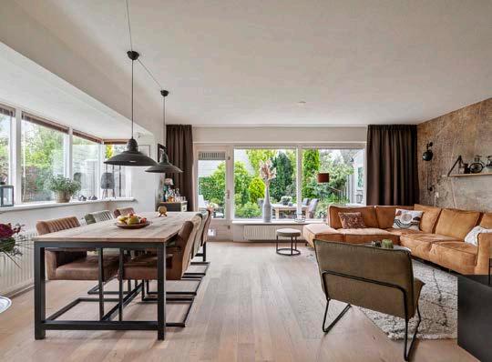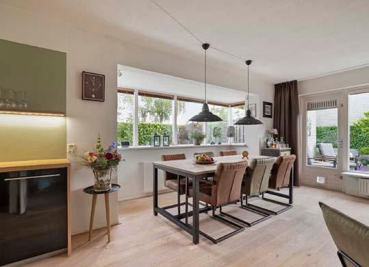 Stap binnen in de tuingerichte woonkamer en ervaar de warmte en gezelligheid die deze ruimte uitstraalt. De unieke erker zorgt voor een overvloed aan natuurlijk licht en biedt een adembenemend uitzicht op het Meridiaanpark.