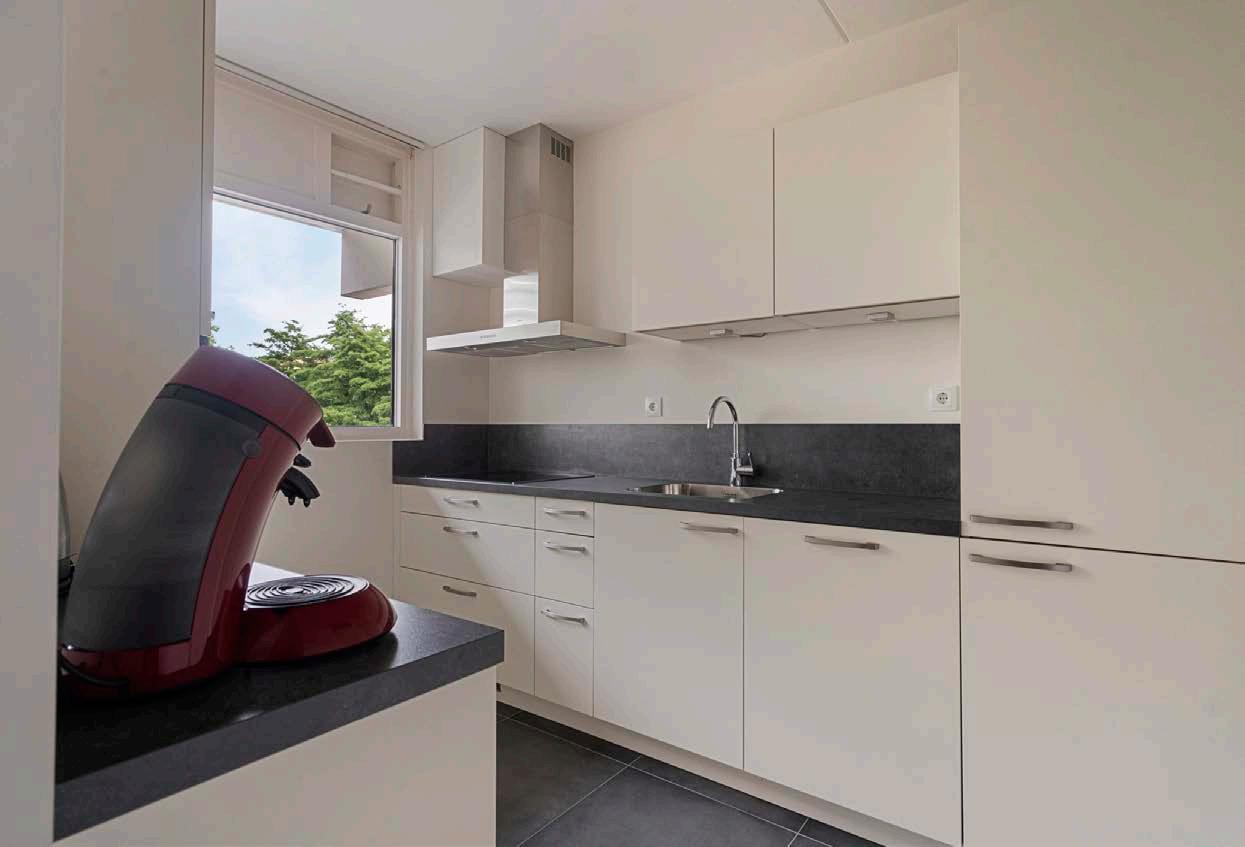 Een van de grootste pluspunten van dit appartement is het prachtige, vrije uitzicht over de daktuinen. Vanaf je zonnige balkon op het zuiden kun je genieten van de groene omgeving en de ondergaande zon. Dit uitzicht biedt een oase van rust in het drukke stadsleven en een perfecte plek om te ontspannen na een lange dag.