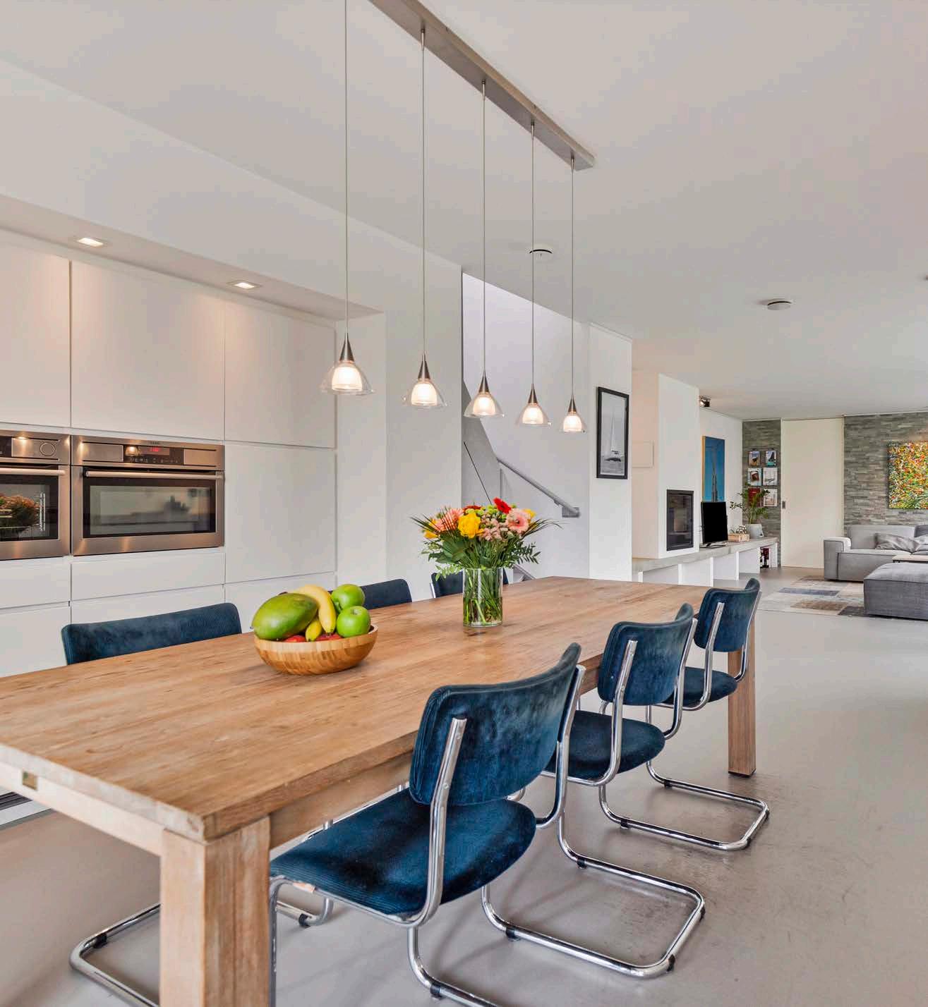 Deze hoekwoning is een ware oase van licht en ruimte. De grote woonkamer, met zijn uitnodigende lichtinval, biedt alle plaats voor een gezellige zithoek en een eetgedeelte waar het hele gezin samenkomt. De luxe open woonkeuken, het kloppend hart van het huis, is uitgerust met moderne apparatuur en een ruim werkblad waarop je met gemak de heerlijkste gerechten bereidt.