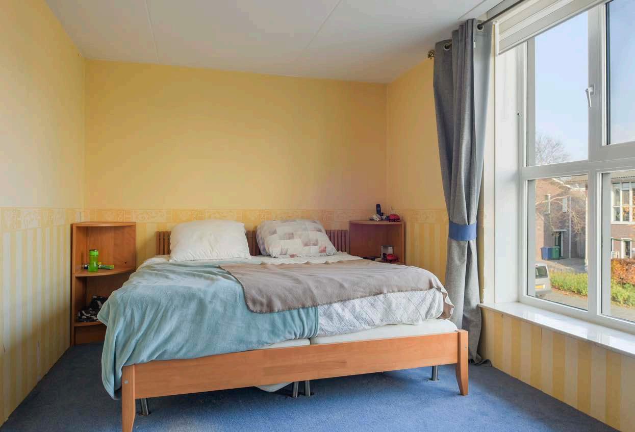 Op de bovenverdieping zijn drie slaapkamers gesitueerd, waarvan één aan de voorzijde over de gehele breedte van de woning en twee aan de achterzijde. De kamers zijn afgewerkt met vloerbedekking en behang. In de grote slaapkamer aan de voorzijde is de vliering toegankelijk. Deze leent zich handig voor opslagruimte.