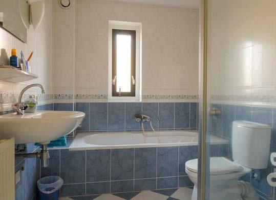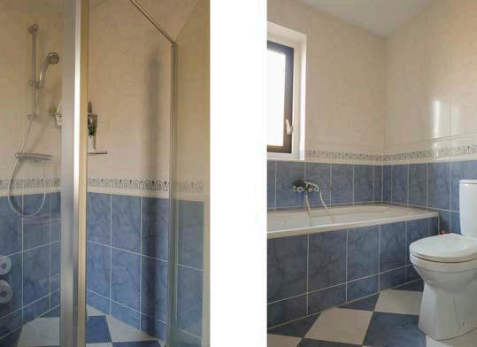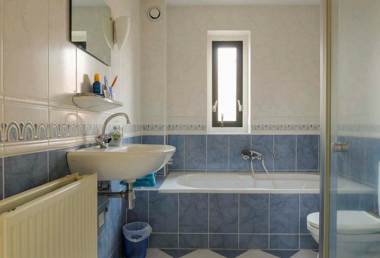 De badkamer is tevens op de bovenverdieping gesitueerd. Deze is voorzien van een douchecabine, ligbad, wastafel en toilet.