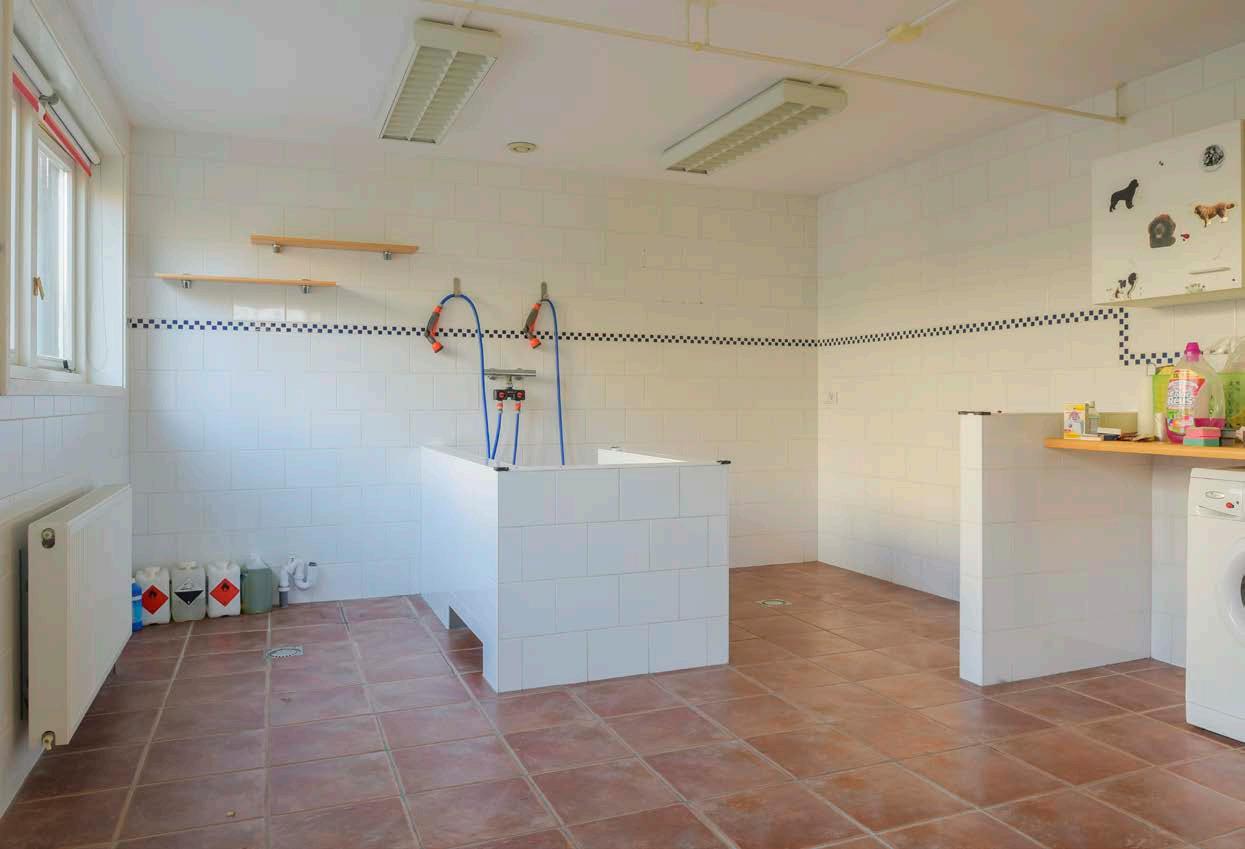 Achterin de tuin is de trimsalon die beschikt over een fundering, gas, water, elektra, krachtstroom en een eigen meterkast. Deze ruimte leent zich perfect om aan huis te werken, hobbyen of klussen bijvoorbeeld. Mogelijkheden genoeg!