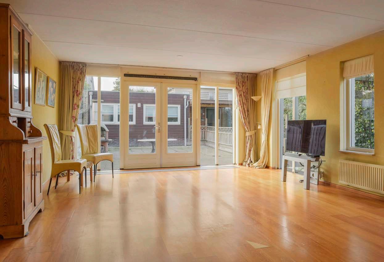 De woon-/eetkamer biedt een zee aan ruimte en veel licht door de diverse ramen. De dubbele openslaande deuren naar de achtertuin zorgen voor een verdere verlenging van de leefruimte door binnen met buiten te verbinden. Fantaseer er maar vast op los wat je met al die ruimte kunt doen!