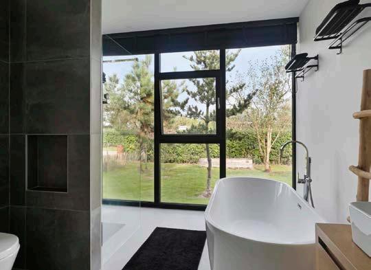 Deze villa beschikt over drie ruime en lichte slaapkamers. Dankzij de ramen van grond tot plafond heb je een prachtig uitzicht op de tuin. De gietvloer en gestucte wanden zorgen voor een strakke en tijdloze afwerking, die je eenvoudig naar eigen smaak kunt inrichten.