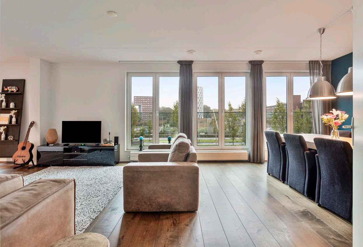Het appartement heeft een woonoppervlakte van 101 m² en biedt een ruime en lichte woonkamer dankzij vele raampartijen