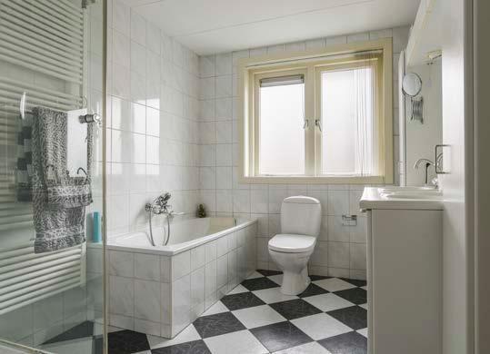 De badkamer is volledig betegeld en compleet ingericht met een ligbad, douche, dubbele was tafel en een toilet. Door het raam valt het nodige daglicht naar binnen en je hebt de mogelijkheid om de ramen open te zetten voor extra ventilatie.