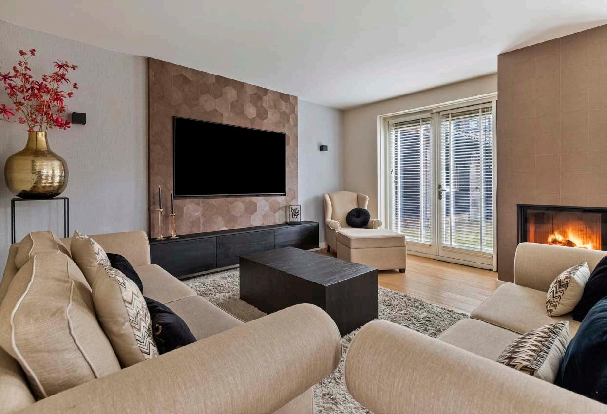 Stap binnen in de ruime entree waar je meteen de nette afwerking en het moderne comfort ervaart. De lichte woonkamer verwelkomt je met veel natuurlijk licht dankzij de grote raampartijen en de deur naar de achtertuin. Hier is plaats genoeg voor een gezellige hoekbank bij de houthaard, ideaal voor knusse avonden met het gezin.