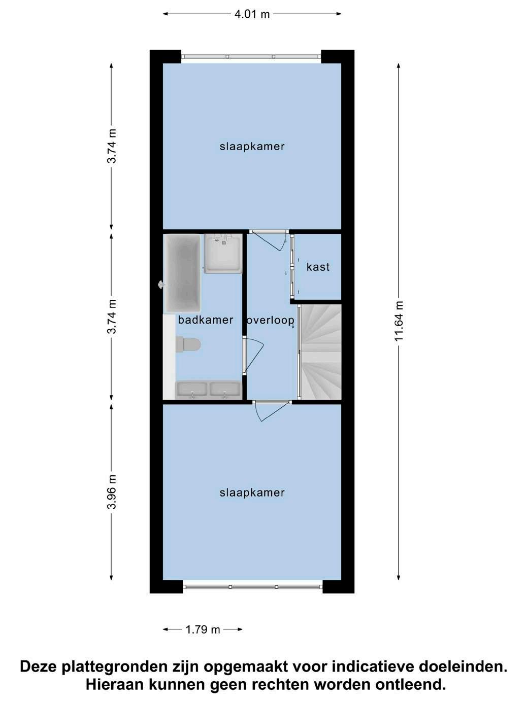 Middels de vaste trap krijgt u toegang tot de tweede verdieping, hier zijn de ruime overloop en nog twee 2 ruime slaapkamers gesitueerd. Deze vertrekken zijn voorzien van een laminaatvloer voorzien van vloerverwarming en gestucte wanden met inbouwspots.