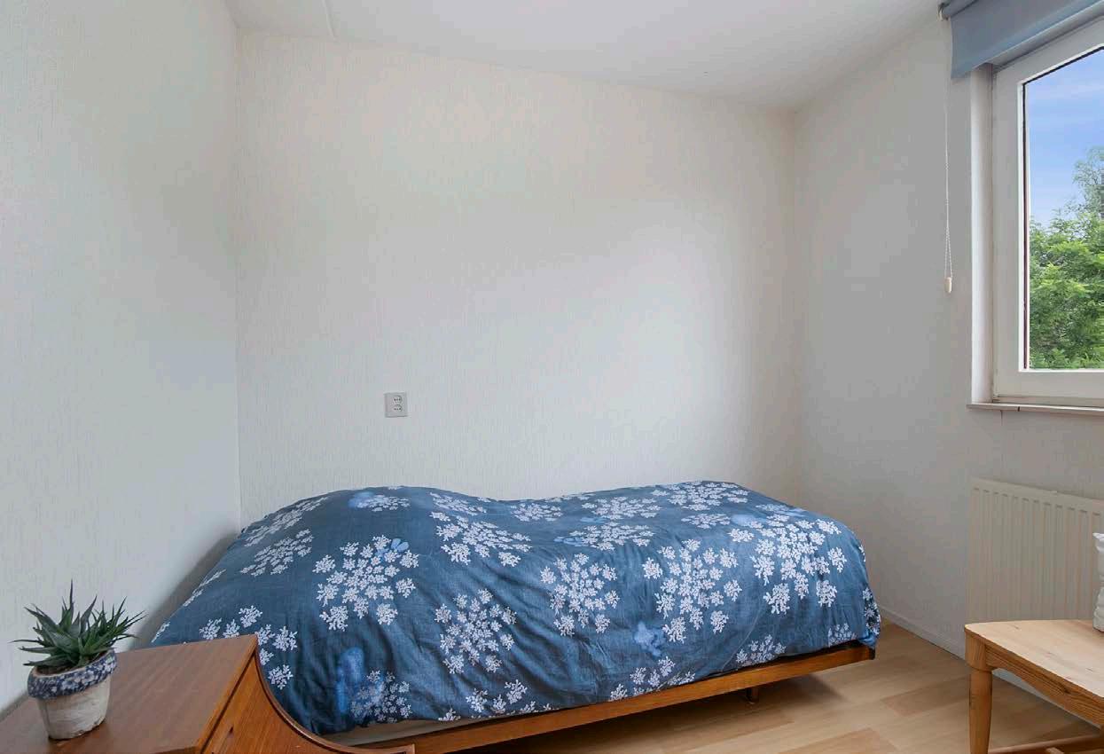 De slaapkamer is ook netjes afgewerkt met een laminaatvloer. Daarnaast is de ruimte zeer praktisch in te delen.