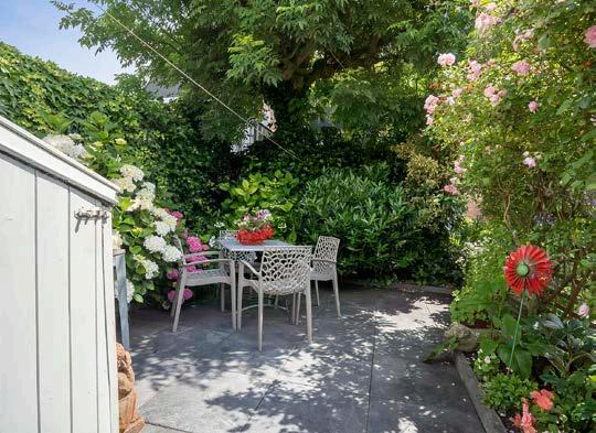 De tuin, gelegen op het oosten, is een heerlijke plek om de dag te beginnen. Hier kun je ‘s ochtends genieten van de eerste zonnestralen terwijl je ontbijt of een kop koffie drinkt. De tuin biedt voldoende ruimte voor een zitje en een barbecue. Het is een perfecte plek om te ontspannen en te ontsnappen aan de drukte van het dagelijkse leven.