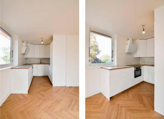 Er is meer dan genoeg plek voor een grote comfortabele bank, een gezellige eettafel of een inspirerend hoekje om thuis te werken. Praktisch en uitnodigend: dat typeert de indeling van dit appartement.