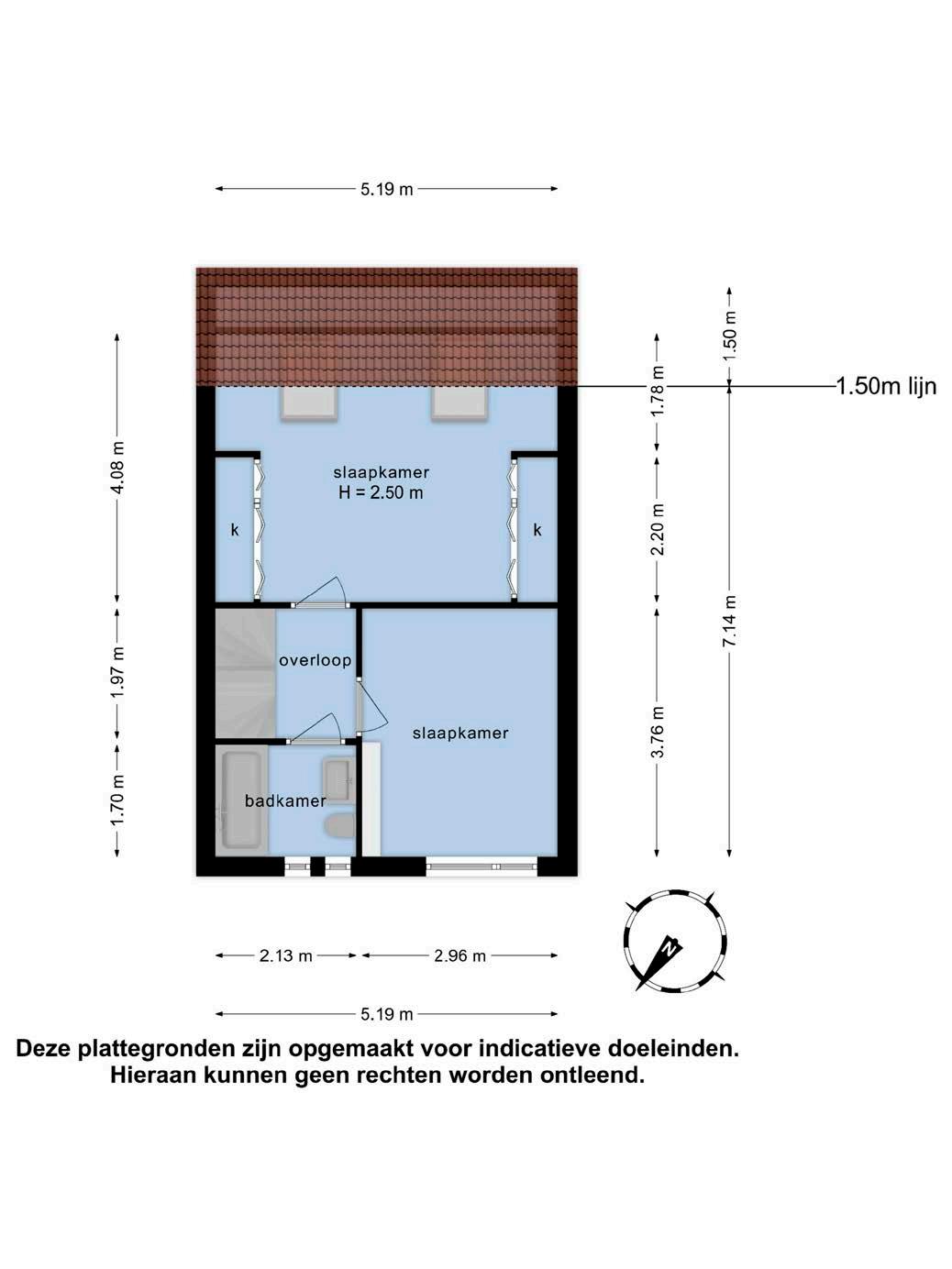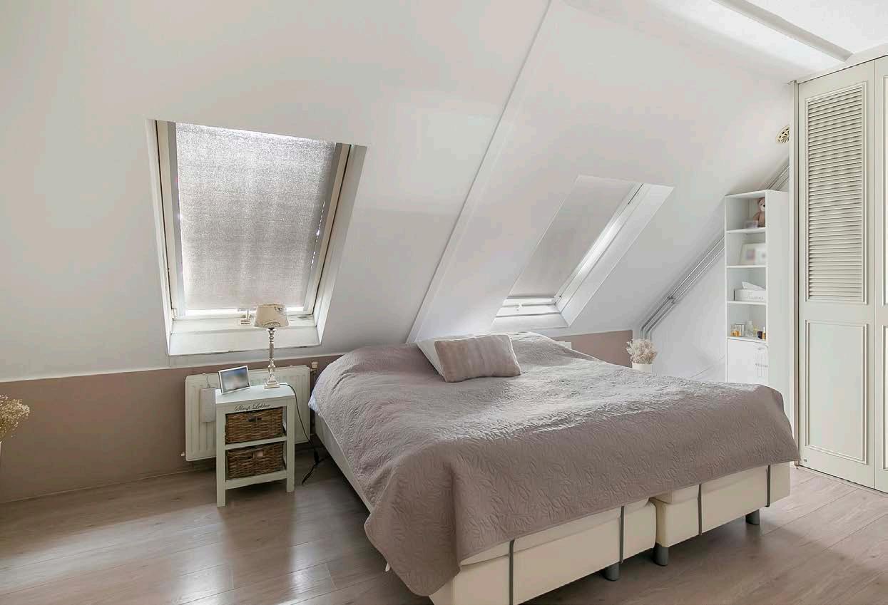 Op de eerste verdieping vind je de overloop die leidt naar twee slaapkamers. De ouderslaapkamer is ruim en biedt met zijn dakramen en handige kastruimte een oase van rust en comfort. De tweede slaapkamer is perfect voor een kinderkamer, logeerkamer of thuiskantoor. De badkamer met ligbad/douche, toilet en wastafel, biedt daarnaast het comfort dat je zoekt.