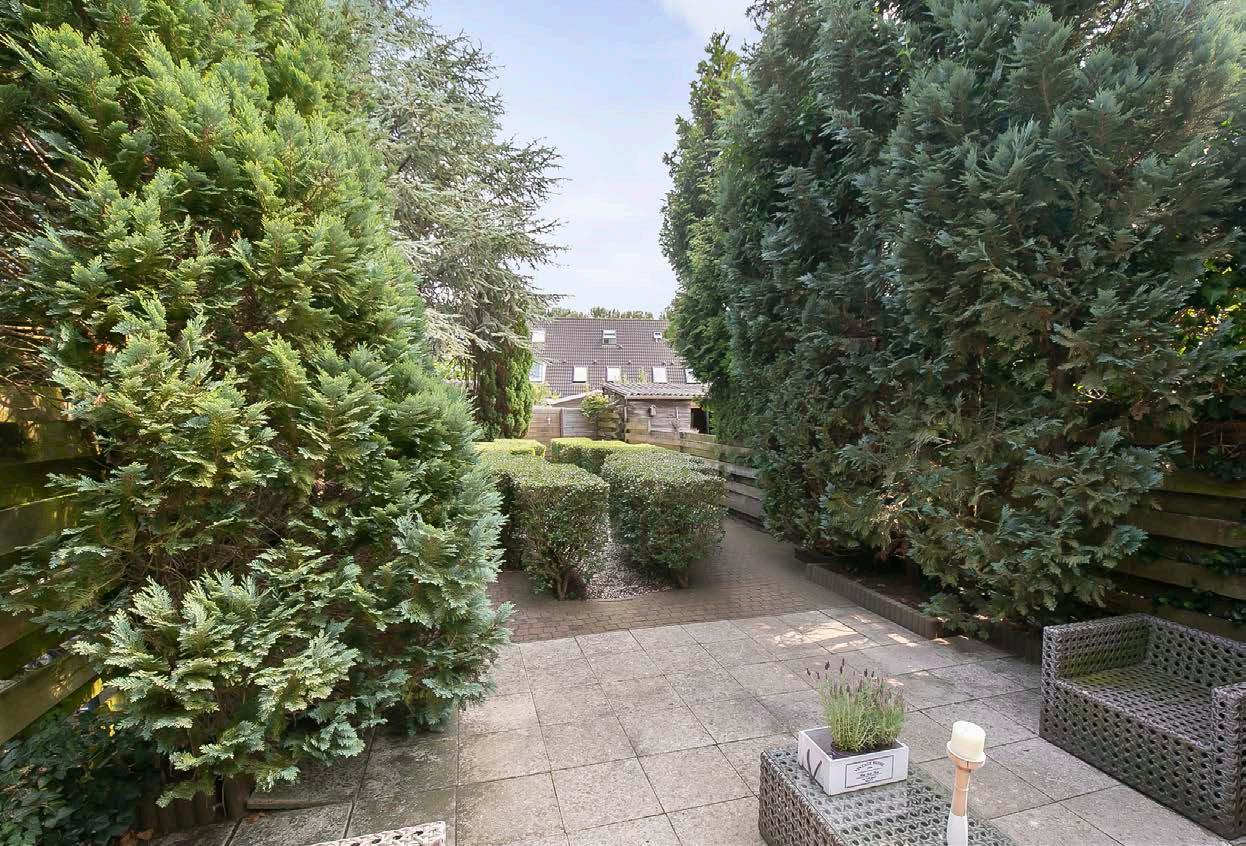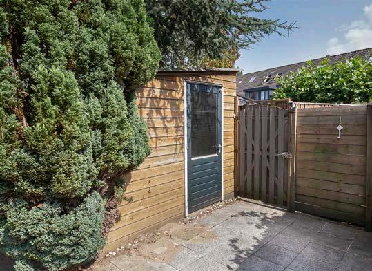 De diepe en zonnige achtertuin nodigt uit tot spelen, ontspannen en genieten van de lange zomeravonden. Of je nu een barbecue organiseert, een boek leest in de zon, of gewoon geniet van de rust, deze tuin biedt het allemaal. De houten berging en een achterom maken het plaatje compleet.