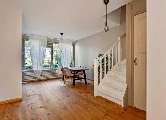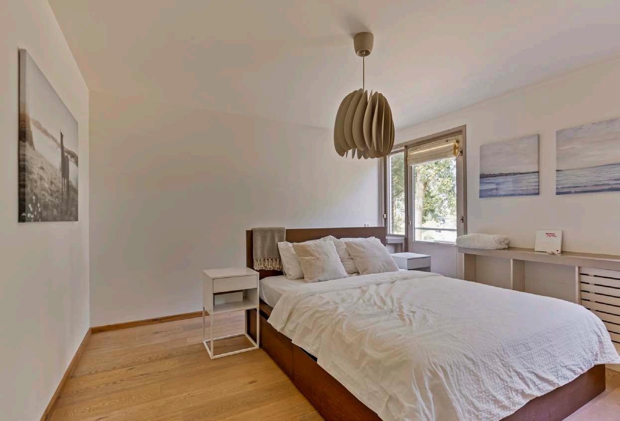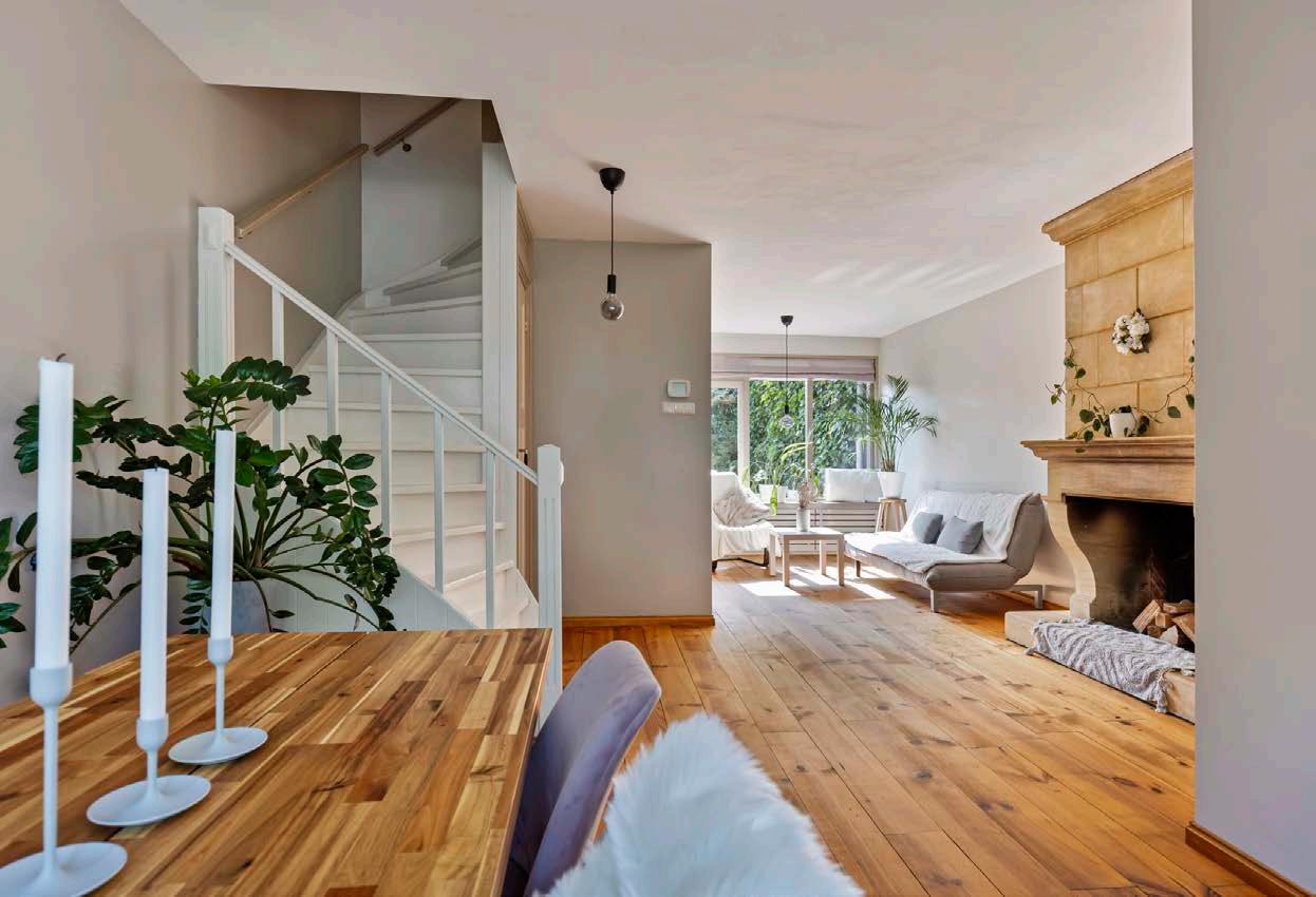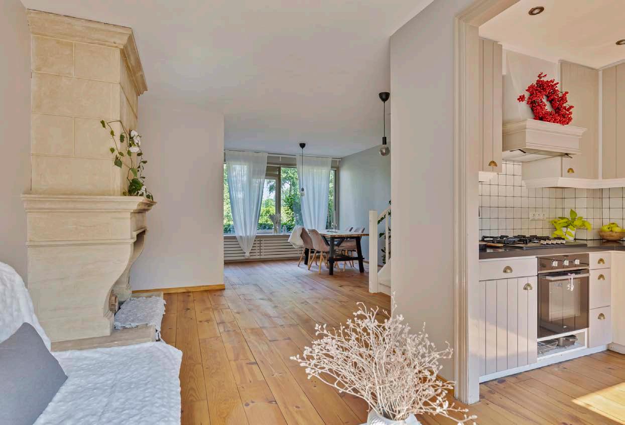 We have enjoyed the wide canal view, which allows us to appreciate the changing seasons. The fireplace adds a cozy touch to winter evenings, while the garden captures plenty of morning sun, making it a perfect spot for coffee. In the evenings, the sun bathes the bedroom side in a warm glow before setting behind the trees. The wooden floors provide an authentic and warm feel.