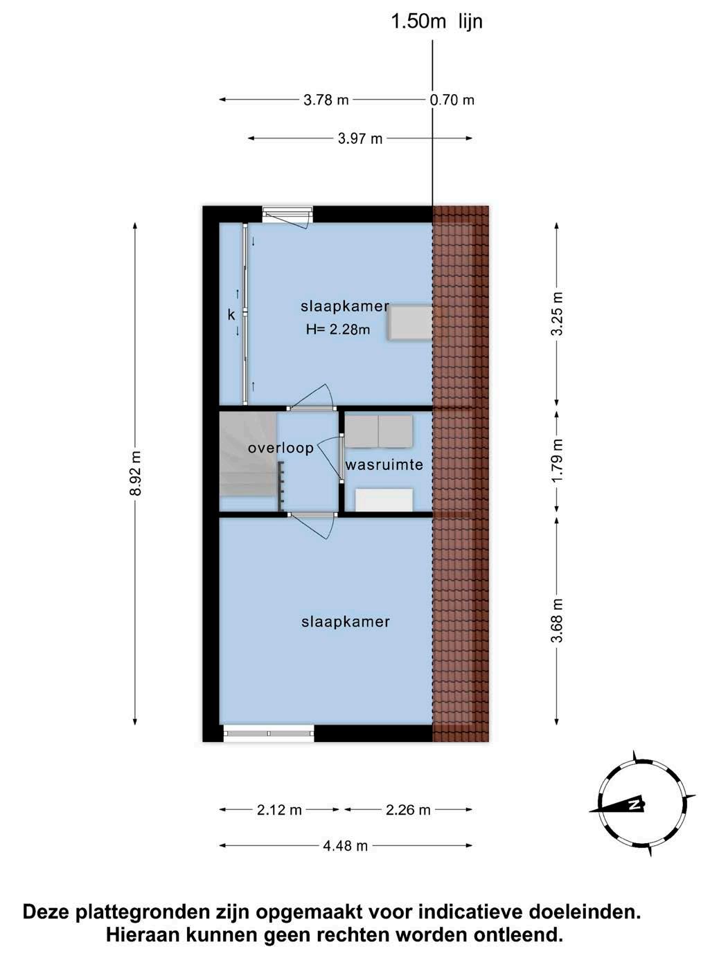 De tweede verdieping is bereikbaar via een vaste trap en biedt wederom twee ruime slaapkamers, de dakramen zorgen voor veel licht. Daarnaast is er voldoende bergruimte en een praktische wasruimte met wasmachine- en drogeropstelling en de CV-ketel.