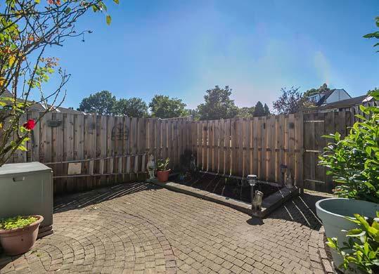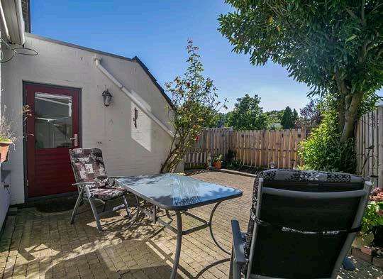 Buiten geniet je van een voortuin op het noordoosten en een zonnige achtertuin op het zuidwesten, perfect voor lange zomeravonden en om te ontspannen in het zonnetje. De tuin is eenvoudig, maar netjes aangelegd, met bestrating en beplanting. Achter de woning bevindt zich een plantsoen.