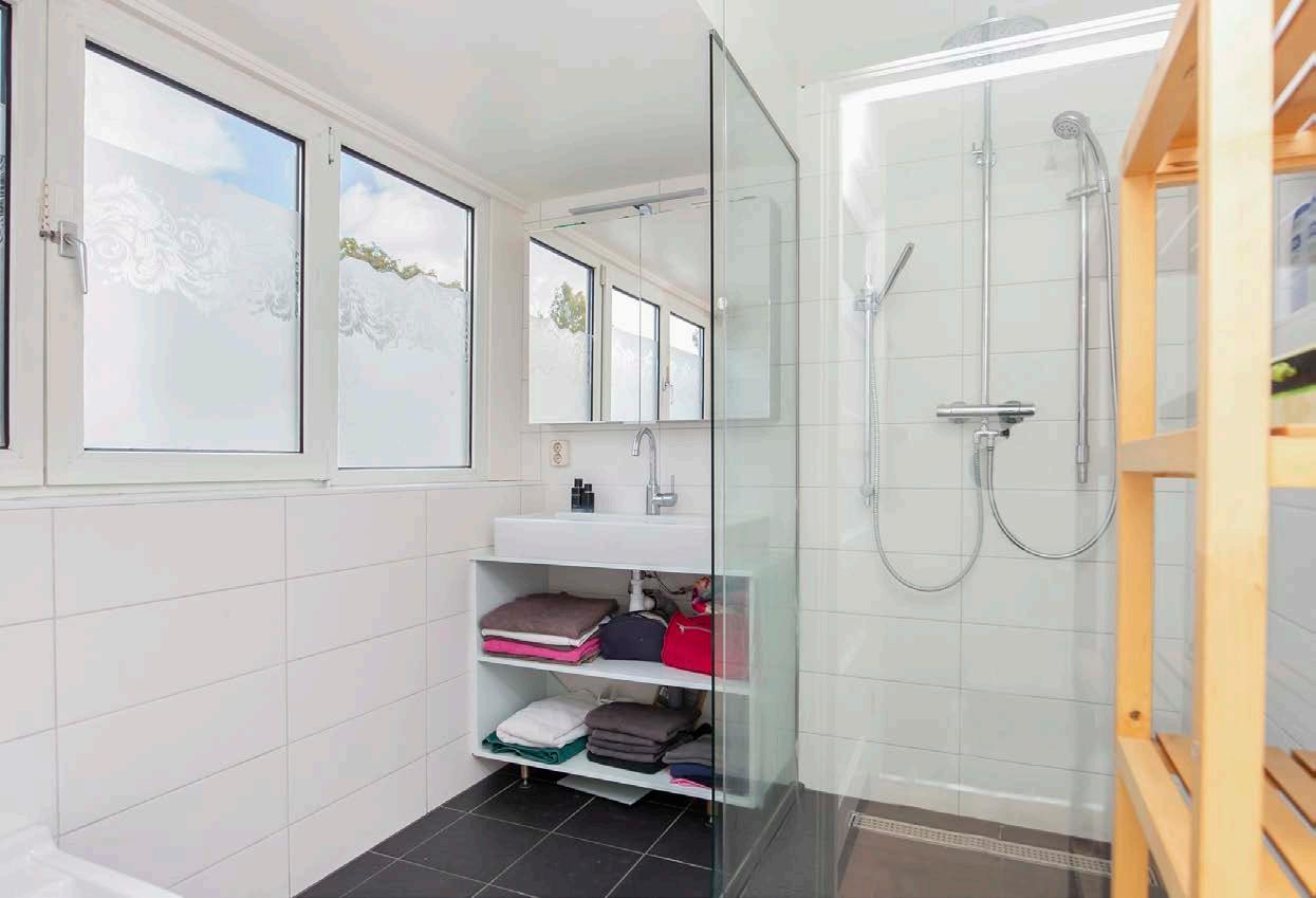 Ook de volledige badkamer is zeer verzorgd te noemen en voorzien van een wastafel, bidet en een ruime inloopdouche.