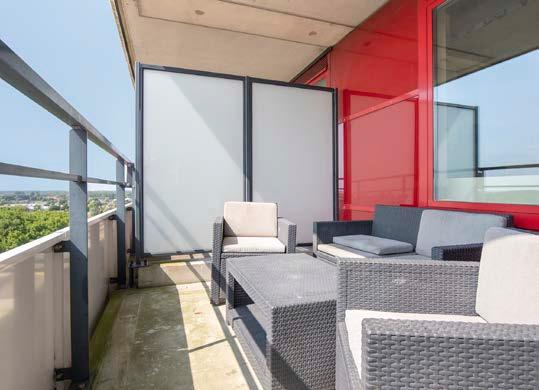 Vanuit de woonkamer kom je op het ruime balkon op het westen, waar je met gemak een tuinset kunt plaatsen om optimaal van het buitenleven te genieten. Het uitzicht vanaf het balkon is vrij en groen: een perfecte plek om tot rust te komen.