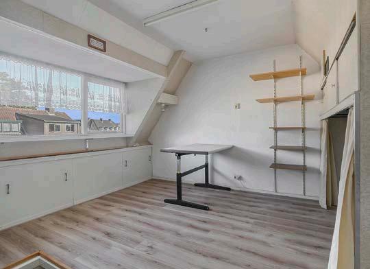 Fijne ruime zolder (te bereiken via een vaste trap) met grote dakkapel waar een fijne derde slaapkamer gecreëerd kan worden.