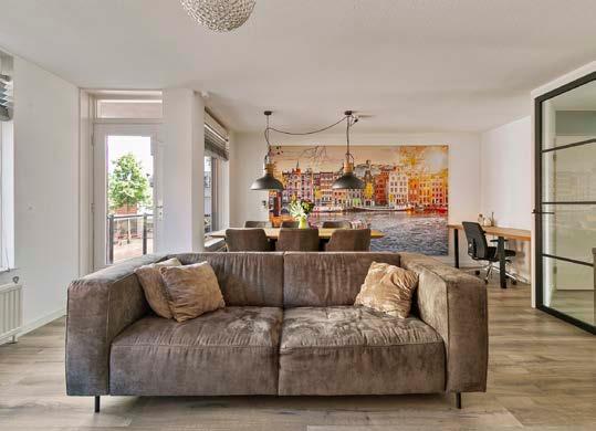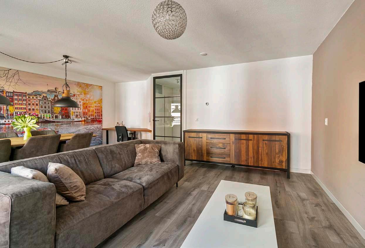 De woonkamer is royaal van opzet en biedt voldoende ruimte voor zowel een gezellige zithoek als een eethoek. Grote ramen laten veel natuurlijk licht binnen en zorgen voor een lichte en aangename sfeer.