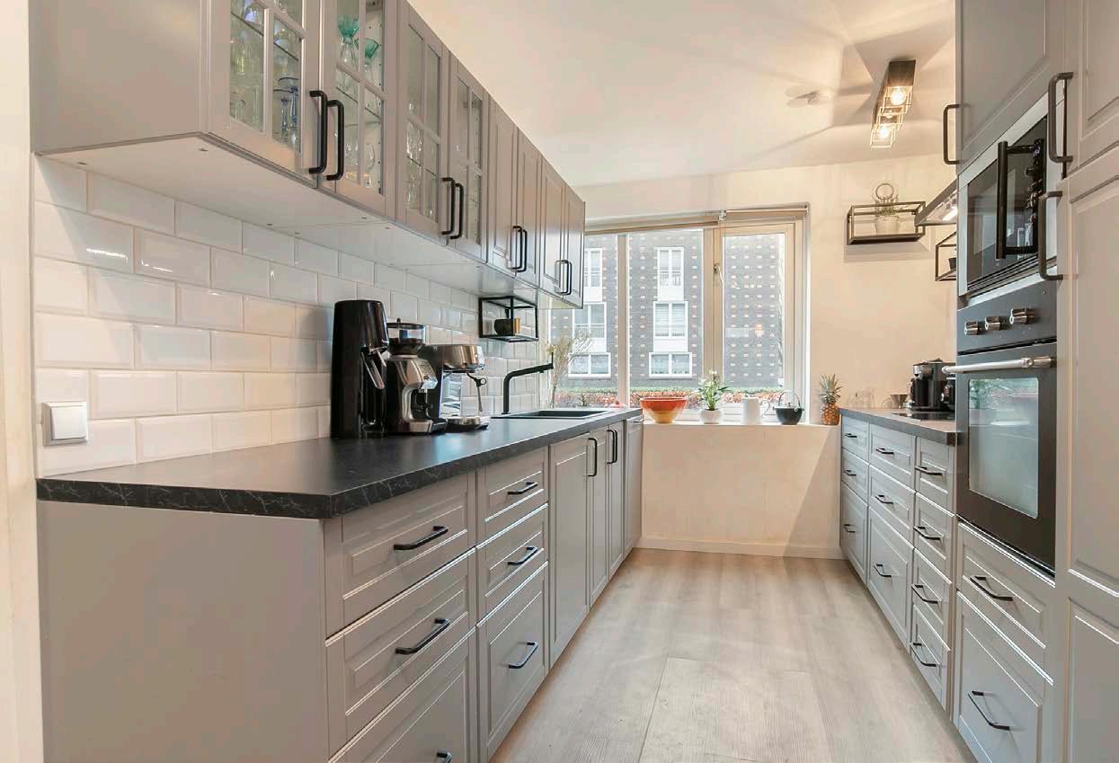 De nieuwe keuken is in 2021 geplaatst en is uiteraard voorzien van het nodige kookcomfort, te weten: een vaatwasser, oven, magnetron, inductiekookplaat, afzuigkap en een Amerikaanse koelkast. Ook aan werk-en opbergruimte zult u dankzij de vele kasten en lades niets te kort komen.