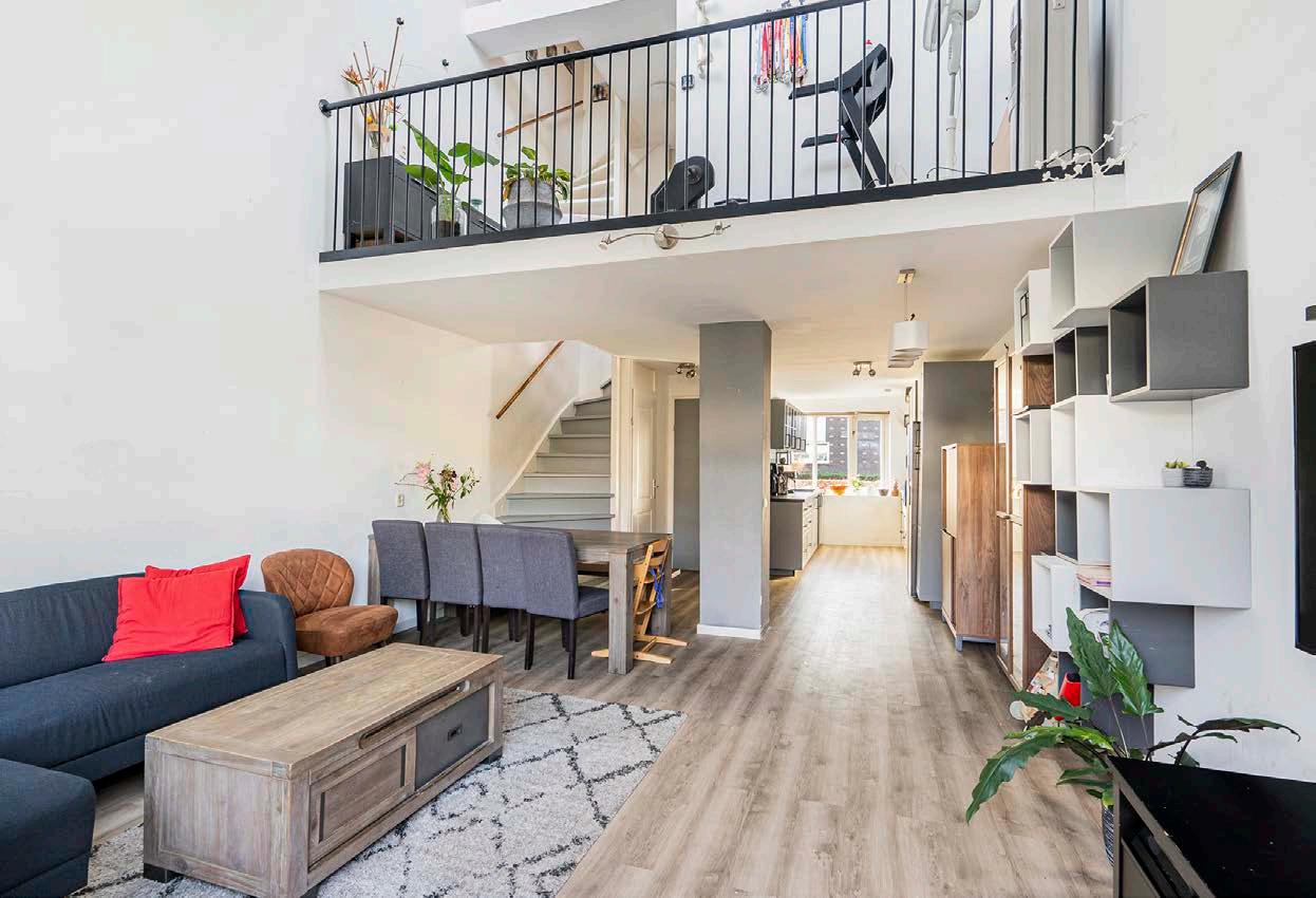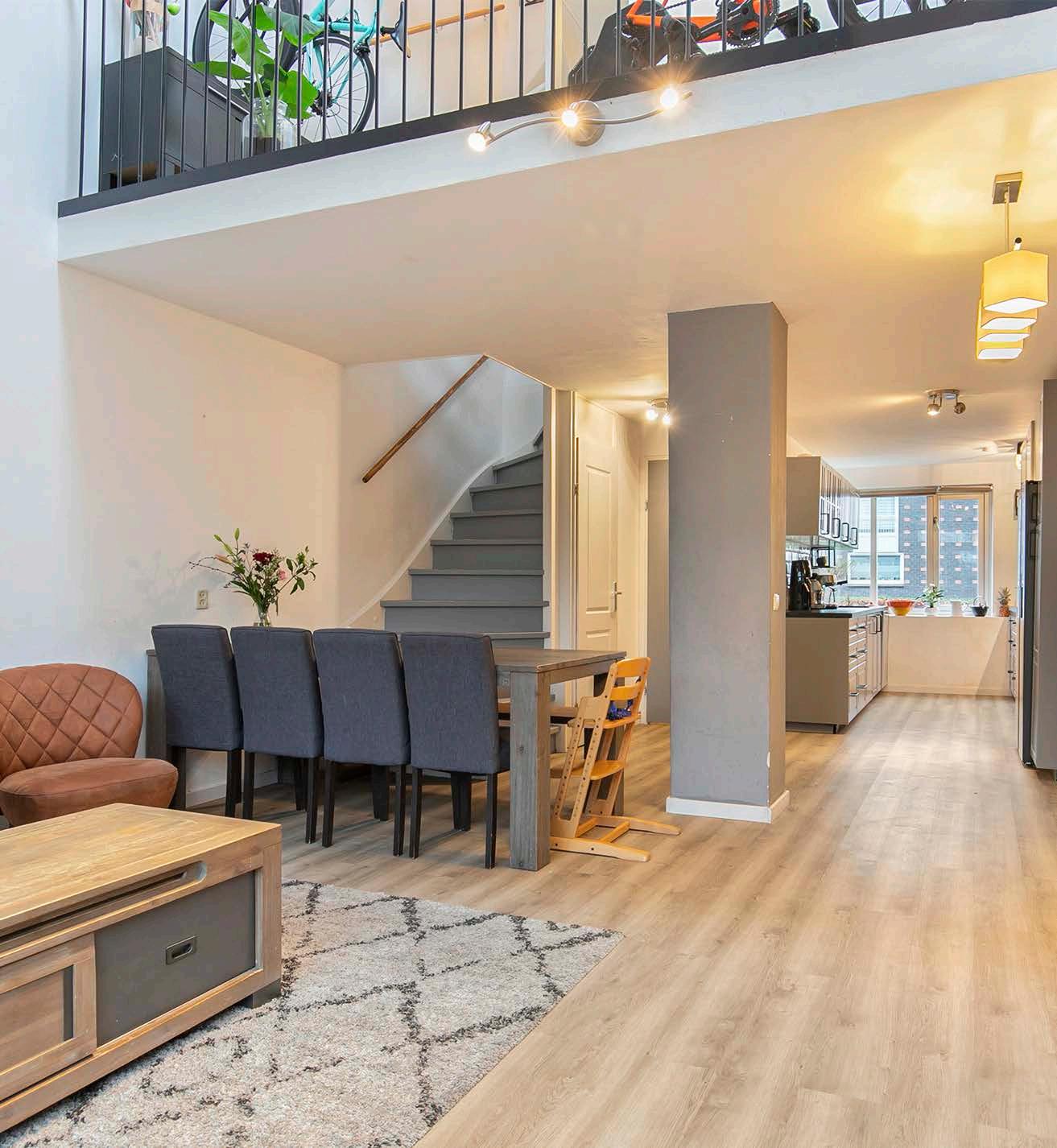 De woonkamer is van ruim formaat en keurig afgewerkt met een laminaatvloer en strak gestucte wanden, tevens oogt de woonkamer heel ruimtelijk dankzij het prachtige, hoge plafond en de vide. Een ideale basis om mee op voort te borduren met jouw woonwensen! Zo heeft u in de woonkamer voldoende ruimte voor een comfortabele zithoek en een gezellige eethoek. Ook is de woonkamer lekker licht dankzij de openslaande deuren die toegang verlenen tot de tuin.