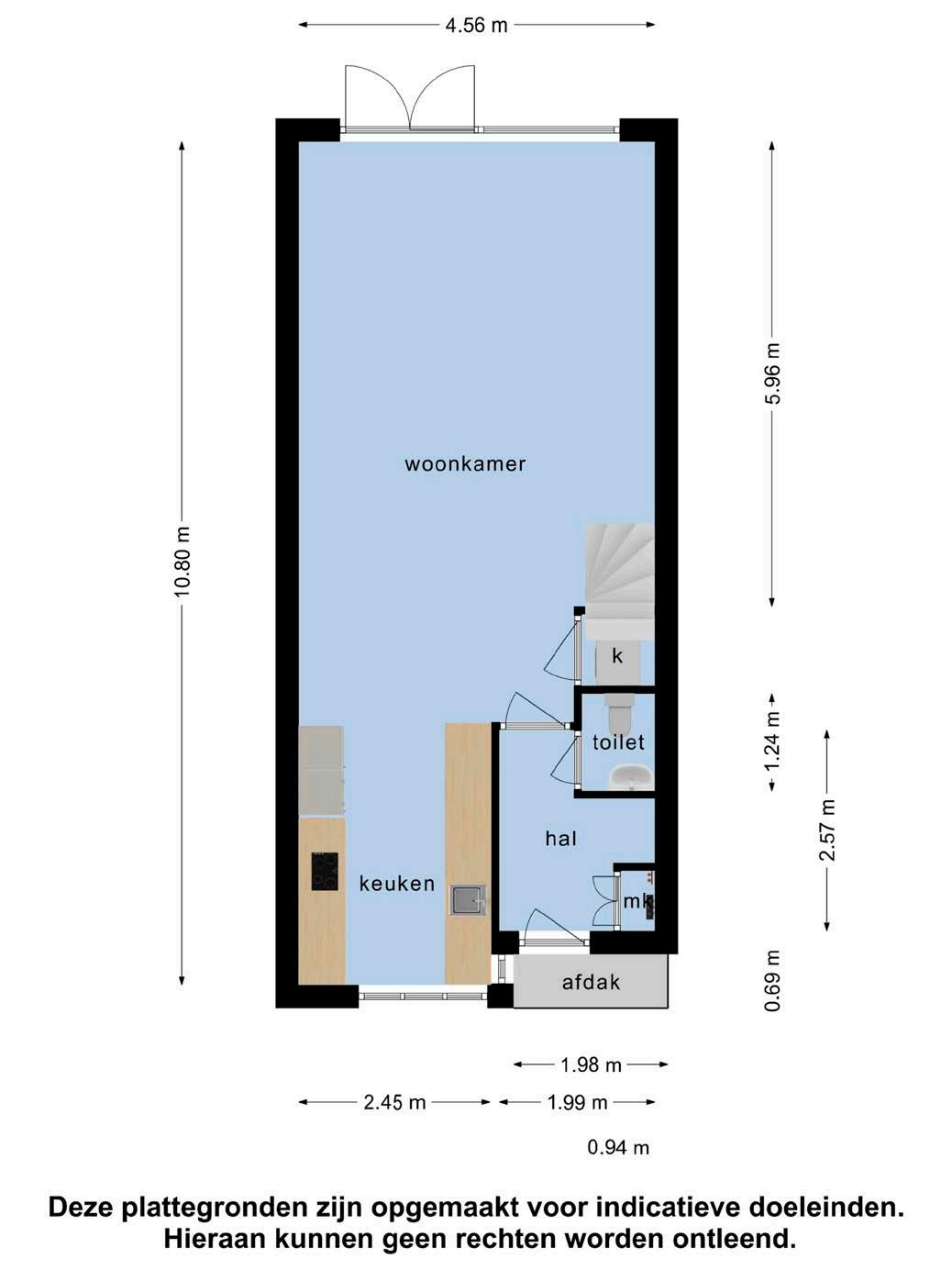 U stapt de woning binnen via de voordeur met afdak en komt in de hal met de meterkast en het separate toilet met fontein terecht.