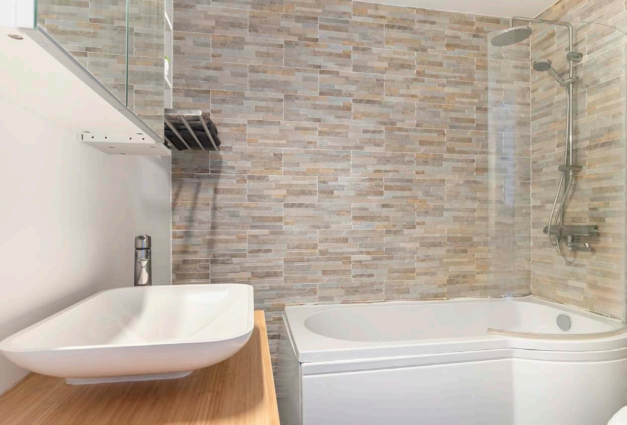 De moderne badkamer is in 2020 geplaatst en uitgerust met een bad/douche combinatie, toilet en een wastafel. Hier kunt u heerlijk ontspannen.